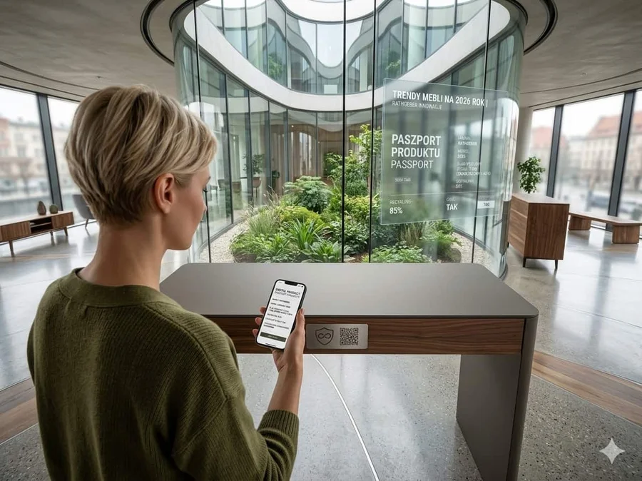 Takie oznaczenia to fundament cyfrowej transformacji meblarstwa w 2026 roku. Kod lub chip umożliwia natychmiastowy dostęp do paszportu produktu, instrukcji, danych o materiałach czy certyfikatach. Dodatkowo staje się narzędziem do budowania relacji z użytkownikiem – od zgłoszeń serwisowych po programy lojalnościowe, aktywowane jednym dotknięciem telefonu.